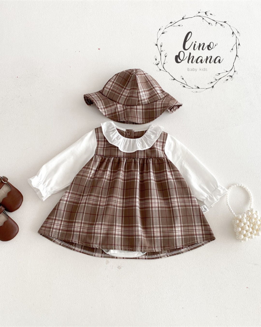 お揃いのチェックデザインのハットがセットになった